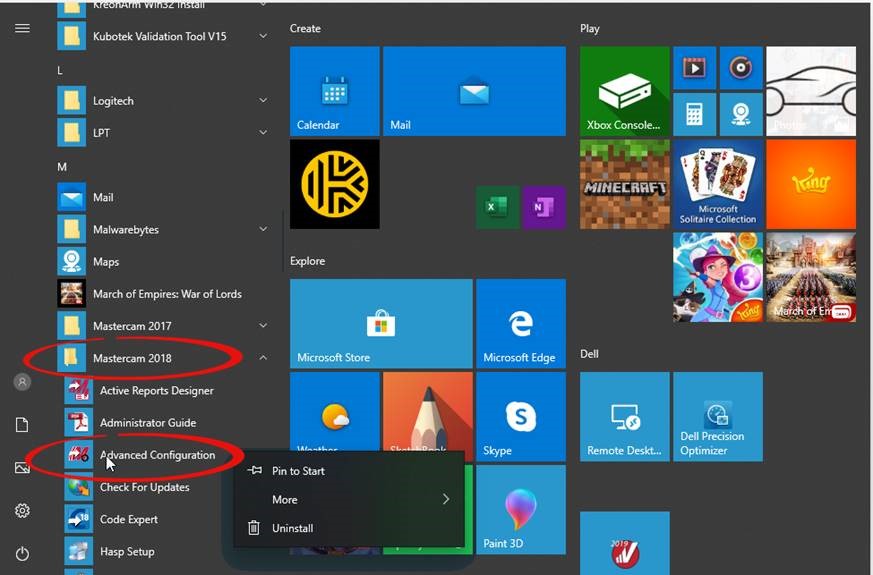 Use the Advanced Configuration tool in Mastercam, Go to all programs>Mastercam 2018 folder>Advanced Configuration