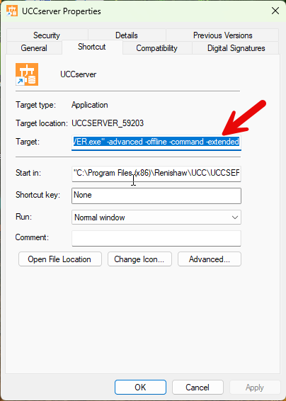 "C:\Program Files (x86)\Renishaw\UCC\UCCSERVER\UCCSERVER_59203\UCCSERVER.exe" -advanced -offline -command -extended